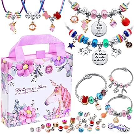 COO&KOO Charm Bracelet Making Kit, A Unicorn Girls Toy That Inspires Creativity and Imagination, Crafts for Ages 8-12 with Jewelry Making & Art Kit Perfect Gifts, Self-Expression!